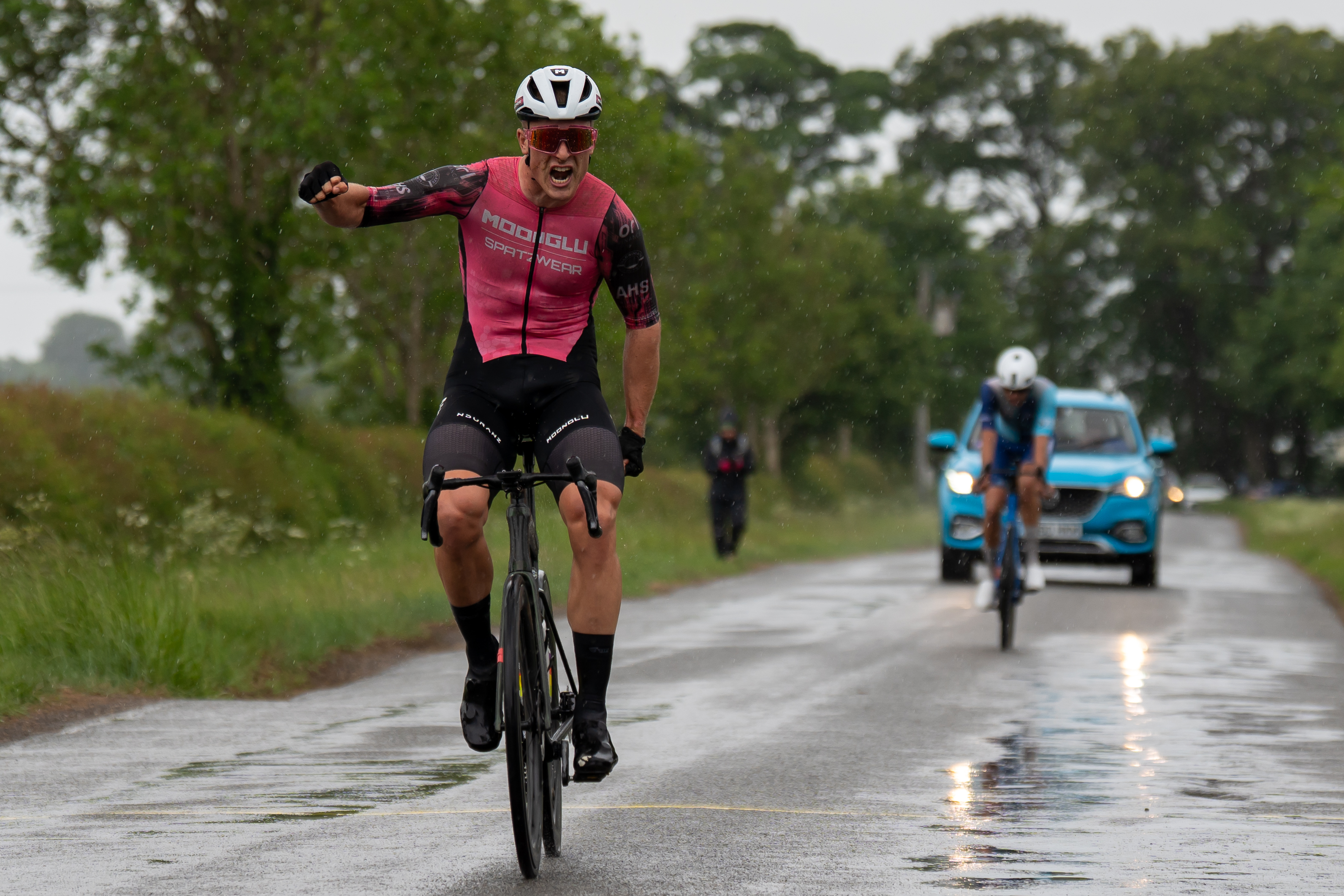 Leading the pair out, Still opened up his sprint on the left side of the road but Hartley launched a powerful acceleration to his right, easing past the Ride Revolution rider for an emotional win, punching the air as he crossed the line.